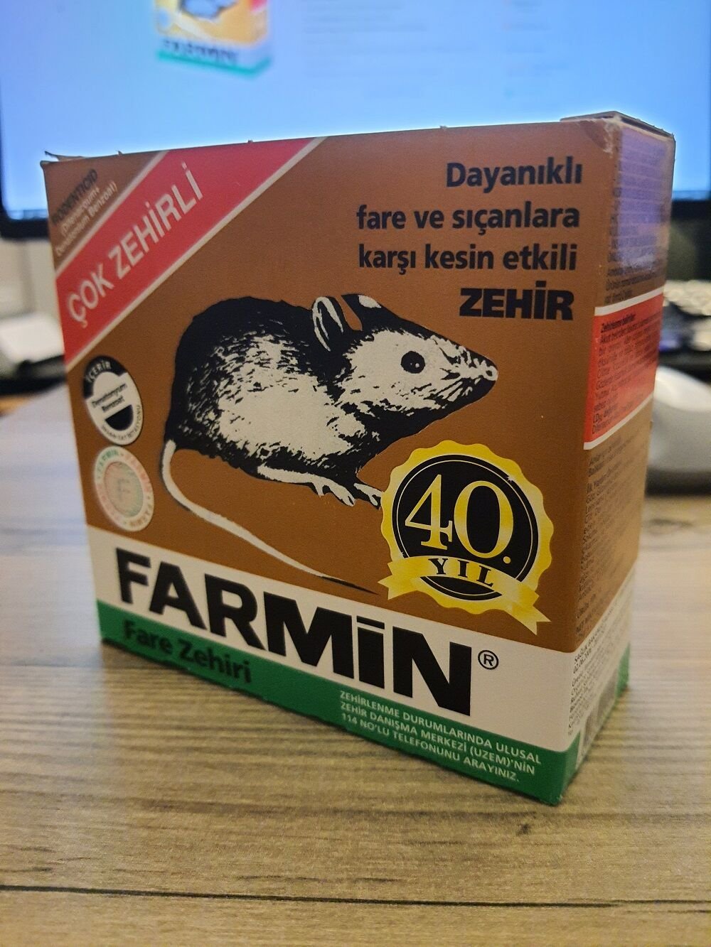 - Toplu olarak gezen fareler yem bulduklarında aralarındaki en yaşlıyı yemin tadına bakmak üzere gönderirler. Yemin zehirli olmadığını anladıklarında hepsi birden o yemi güvenli olarak görürler ve periyodik olarak yerler. Difenacoumlu FARMİN,fare sorunu konusunda kesin çözüme ulaşmak için anında değil, 3 gün içerinde kesin etkisini gösterir.