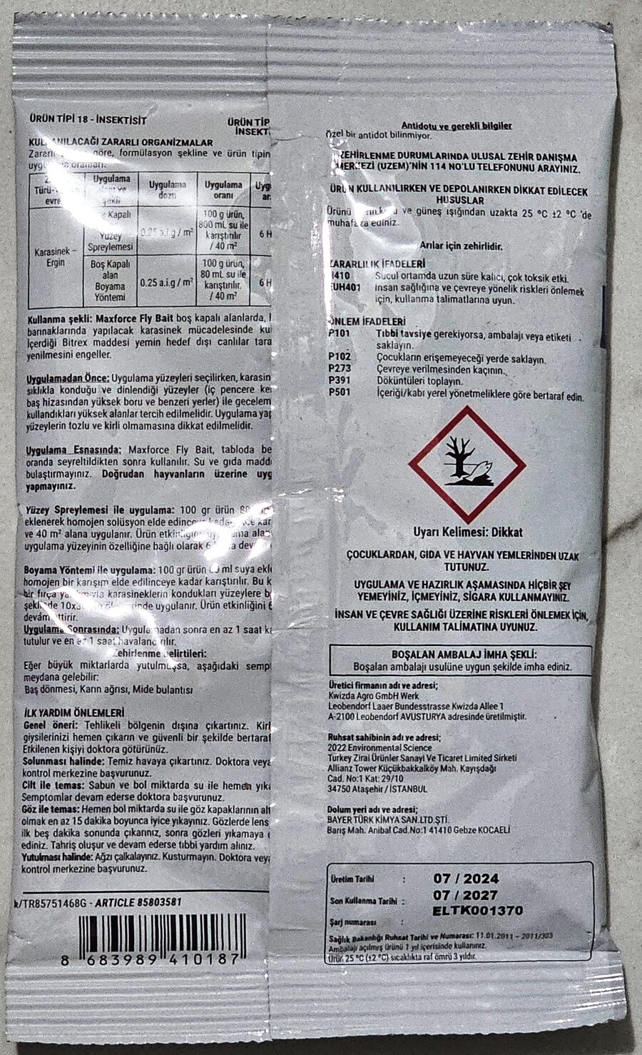Maxforce Fly Bait Kara Sinek Mücadelesi için insektisit 100 Gram