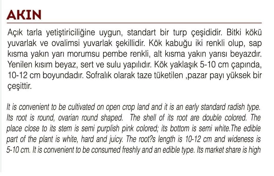 Ürün Tipi: Turp Tohumu