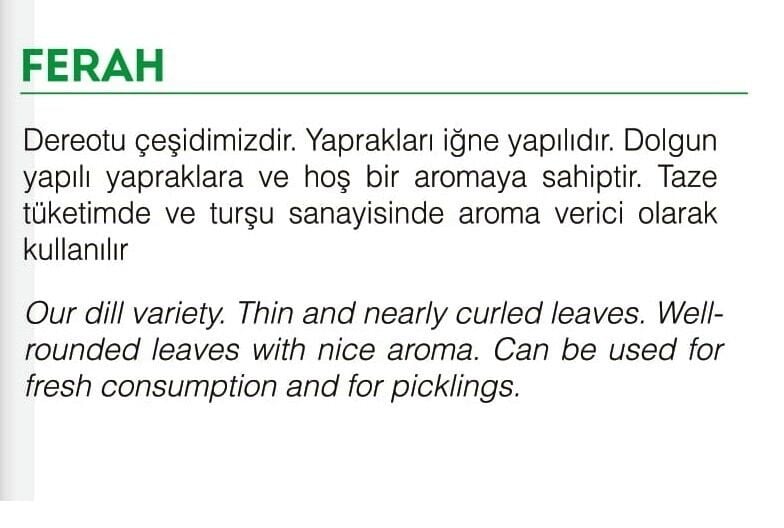 Sağlıklı ve Lezzetli Dereotu: Yerli Doğal Dereotu Tohumları, doğal lezzetini ve besleyici değerini koruyarak sofralarınıza sağlık katar. Yüksek vitamin ve mineral içeriği ile dengeli beslenmenize yardımcı olur. Salatalarda, çorbalarda ve birçok farklı yemekte keyifle kullanabilirsiniz.