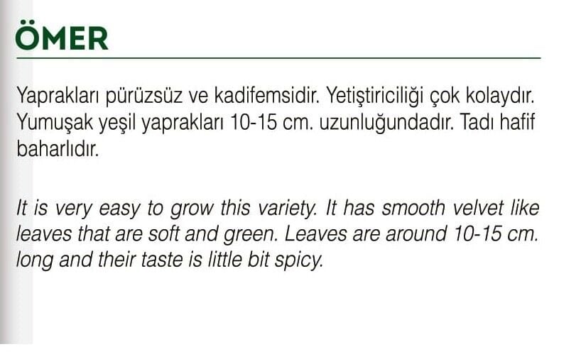 Tohum Tipi: Gelenekseldir, GDO, hibrit ve hormon katkı maddesi içermez