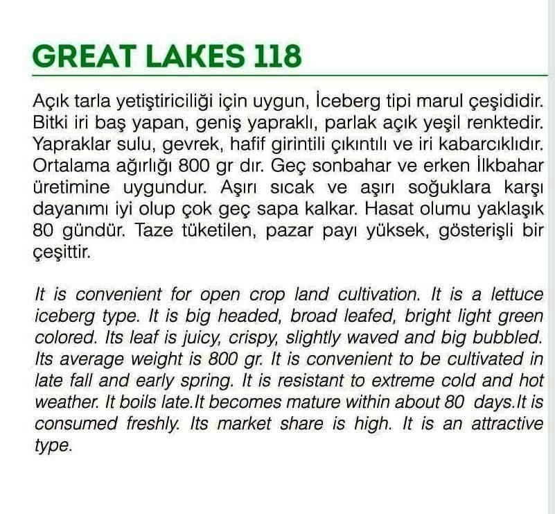 Sağlıklı ve Lezzetli Iceberg Marullar: Yerli Doğal Göbek Marul Iceberg Tohumları, doğal lezzetini ve besleyici değerini koruyarak sofralarınıza sağlık katar. Yüksek vitamin ve mineral içeriği ile dengeli beslenmenize yardımcı olur. Salatalarda ve birçok farklı yemekte keyifle kullanabilirsiniz.