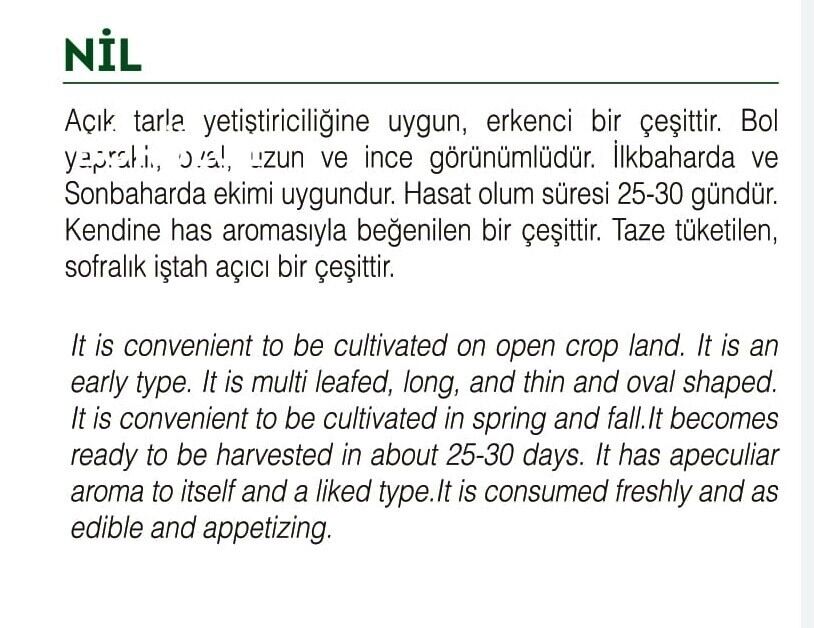 Tohum Tipi: Gelenekseldir, GDO, hibrit ve hormon katkı maddesi içermez