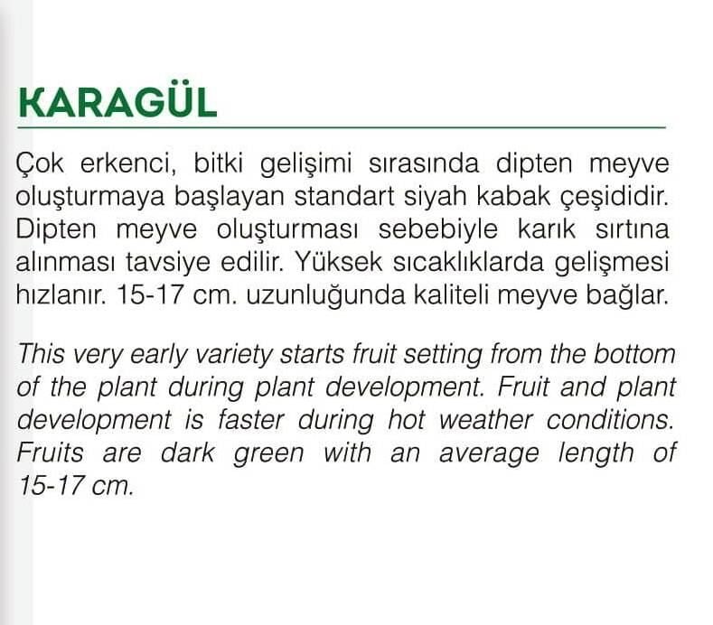 Tohum Tipi: Gelenekseldir, GDO, hibrit ve hormon katkı maddesi içermez