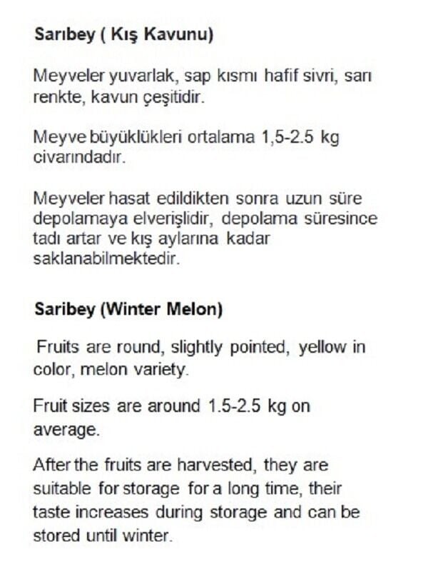 Ürün Adı: Yerli Doğal Kışlık Sarıbey Kavunu Tohumu 100 Adet Tohum
