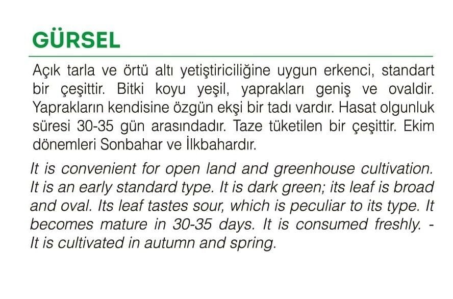 Tohum Tipi: Gelenekseldir, GDO, hibrit ve hormon katkı maddesi içermez
