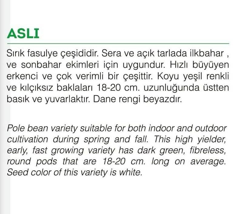 Sağlıklı ve Lezzetli Sırık Fasulye: Yerli Doğal Sırık Fasulye Tohumları, doğal lezzetini ve besleyici değerini koruyarak sofralarınıza sağlık katar. Yüksek vitamin ve mineral içeriği ile dengeli beslenmenize yardımcı olur. Salatalarda, zeytinyağlı yemeklerde ve birçok farklı yemekte keyifle kullanabilirsiniz.