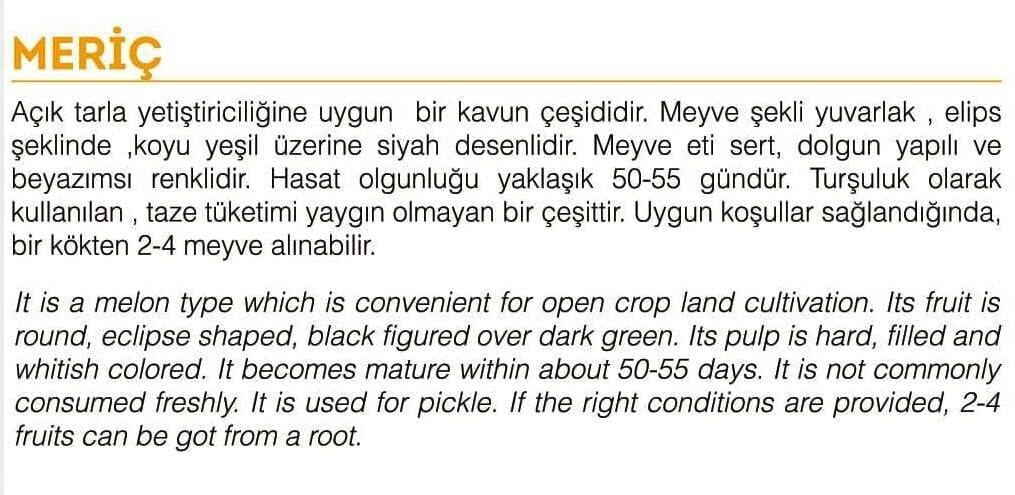 Ürün Adı: Yerli Doğal Turşuluk Kara Kavun Tohumu 100 Adet Tohum