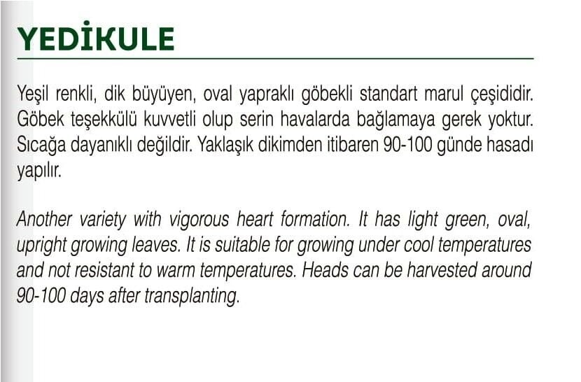 Sağlıklı ve Lezzetli Yedikule Marulları: Yerli Doğal Yedikule Marul Tohumları, doğal lezzetini ve besleyici değerini koruyarak sofralarınıza sağlık katar. Yüksek vitamin ve mineral içeriği ile dengeli beslenmenize yardımcı olur. Salatalarda ve birçok farklı yemekte keyifle kullanabilirsiniz.